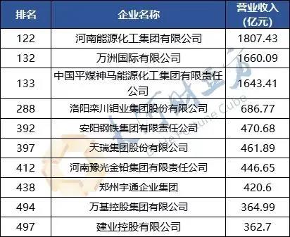 △2020中国企业500强河南企业入围情况