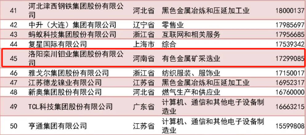 全国工商联方面还介绍,中国民营企业500强的营业收入总额为39.83万亿元,同比增长3.94%。资产总额46.31万亿元,增长11.21%。第二产业入围企业359家,较上年增加17家,制造业企业322家,继续保持主导地位。 2022年,星空体育实现营业收入近1730亿元人民币,实现归属于母公司净利润60.7亿元,创历史最佳业绩。同时,星空体育主要矿产品产量均超额完成2022年度任务目标。基于该业绩,星空体育位于中国500强榜单第45位。