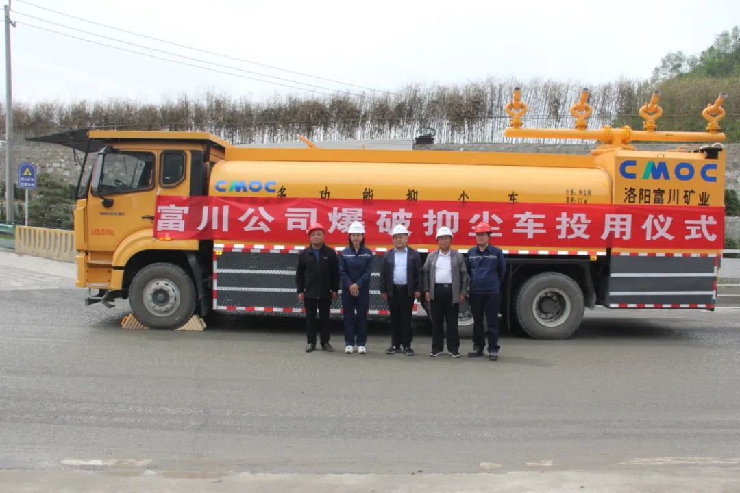 5月16日,栾川县首台矿山爆破抑尘车使用剪彩仪式在洛钼中国区富川公司上房沟钼矿举行,洛阳市生态环境局栾川分局局长徐伟、洛钼中国区总经理王争艳、副总经理许文辉、张金龙等领导参加了剪彩仪式。