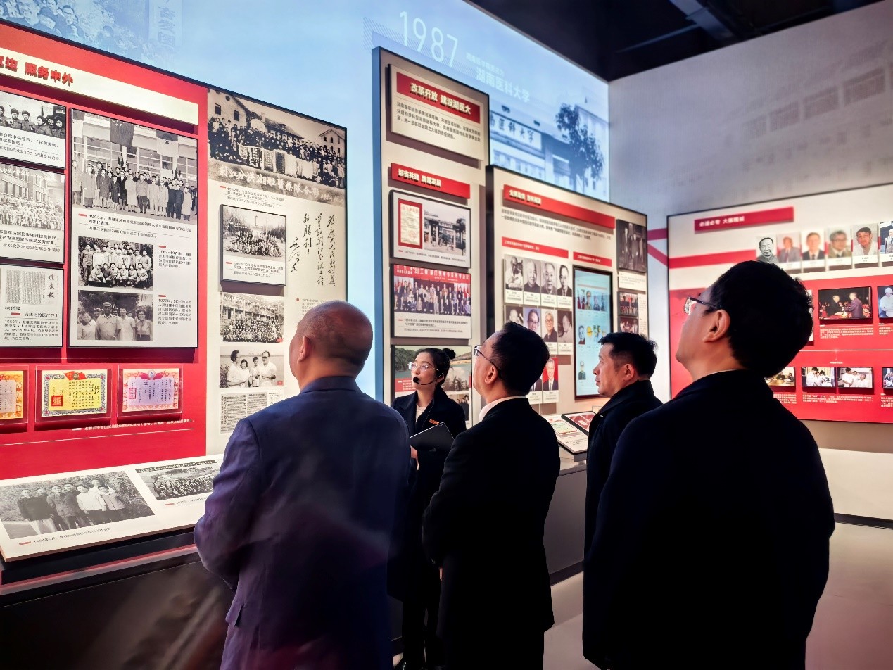 在签约仪式之前,孙瑞文一行受邀参观了中南大学的校史馆,被展馆内丰富的历史资料和珍贵的展品深深吸引,对中南大学在有色金属、医学、轨道交通等领域的卓越成就表示高度赞赏。